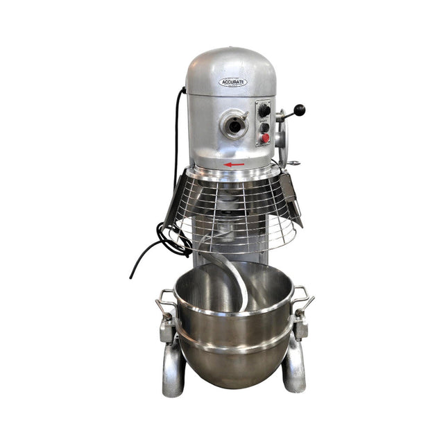 Mixer - 2 attachments. Features 60 quart, Four fixed speeds: 79 / 139 / 231 / 407 RPM, Gear-driven transmission, 15 minute timer, Manual bowl lift, Open base, Large easy to reach controls, Stainless steel bowl guard, 3 PH / 1HP / 1.2amps, 27.5W X 39.25D X 56H, 718Lbs, Please Note: Only photographed accessories are included