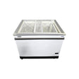 Ice Cream Dipping Cabinet. Features 246 litre net capacity, R290 refrigerant, Climate class 3L1, Temperature range: -24 to -16°C, Sliding glass lids, Mobility casters, White enamel exterior, Easy to clean, 115V / 60Hz / 2.9A, 39.2W X 24.6D X 36.4H, 156Lbs, Please Note: Only photographed accessories are included