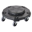 The American Chef DL-18R Trash Can Dolly is designed to fit 20, 32, 44, and 55-gallon trash cans with a secure twist-on fit. Built from recycled polyethylene in grey or black, it offers durability and stability, while five 3" casters provide smooth, quiet mobility in busy environments.