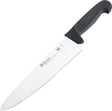The Browne Halco 12" Black Cook's Knife (Model PC12912) features a high-carbon, stain-free German steel blade for precision cutting. Its black polypropylene handle ensures a secure, comfortable grip, making it ideal for professional kitchens. NSF certified for food safety, this knife combines durability with ergonomic design.