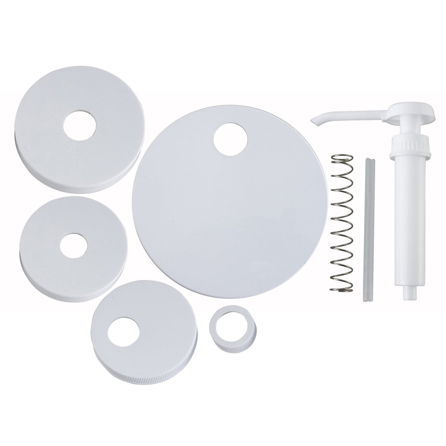 The Winco PKT-6 Pump Kit includes five durable lids designed for easy dispensing and storage, making it the perfect solution for your kitchen or food service needs. Efficient and versatile, this kit ensures convenience and cleanliness in every use.