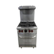 4 Burner Range with Standard Oven - Natural Gas. Features Stainless Steel front/ sides/ backriser/ lift-off high shelf, 6-in stainless steel adjustable legs, 28,000 BTU/Hr open top burners with lift-off heads, Shrouded flash tube pilot system, 12 x 12 cast top grates with aeration bowls, Oven thermostat adjusts from 250 to 500F, One oven rack and four rack positions, 3/4-in Rear gas connection and gas pressure regulator, 142,000 BTU, 32.54W X 24D X 24.34H, 330Lbs, Please Note: Only photographed accessories are included