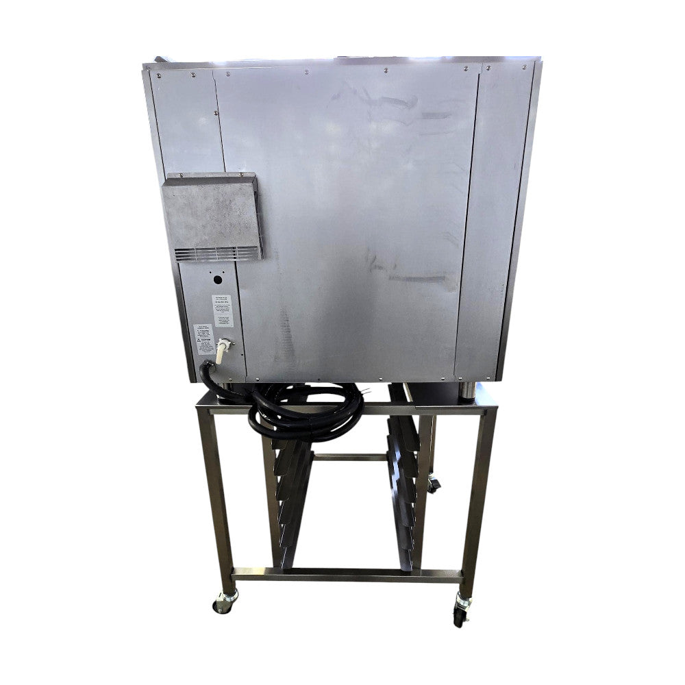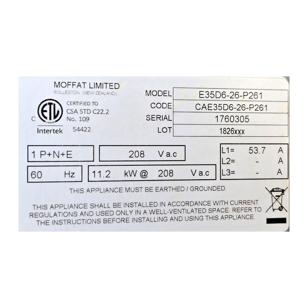 Single Deck Full Size Electric Digital Convection Oven with Steam Injection. Features 6 full size sheet pan capacity, Digital display Time and Temperature Controls, Electronic thermostat control, Electronic timer with countdown or time count modes, Manual mode and Program mode, Steam injection mode (5 levels) and manual injection, Porcelain enameled oven chamber, 53.7 A, 11.2 kW, 208 V/ 60 Hz/ 1 Ph, 35.825W X 36.825D X 68.875H, 359Lbs, Please Note: Only photographed accessories are included
