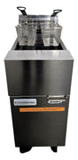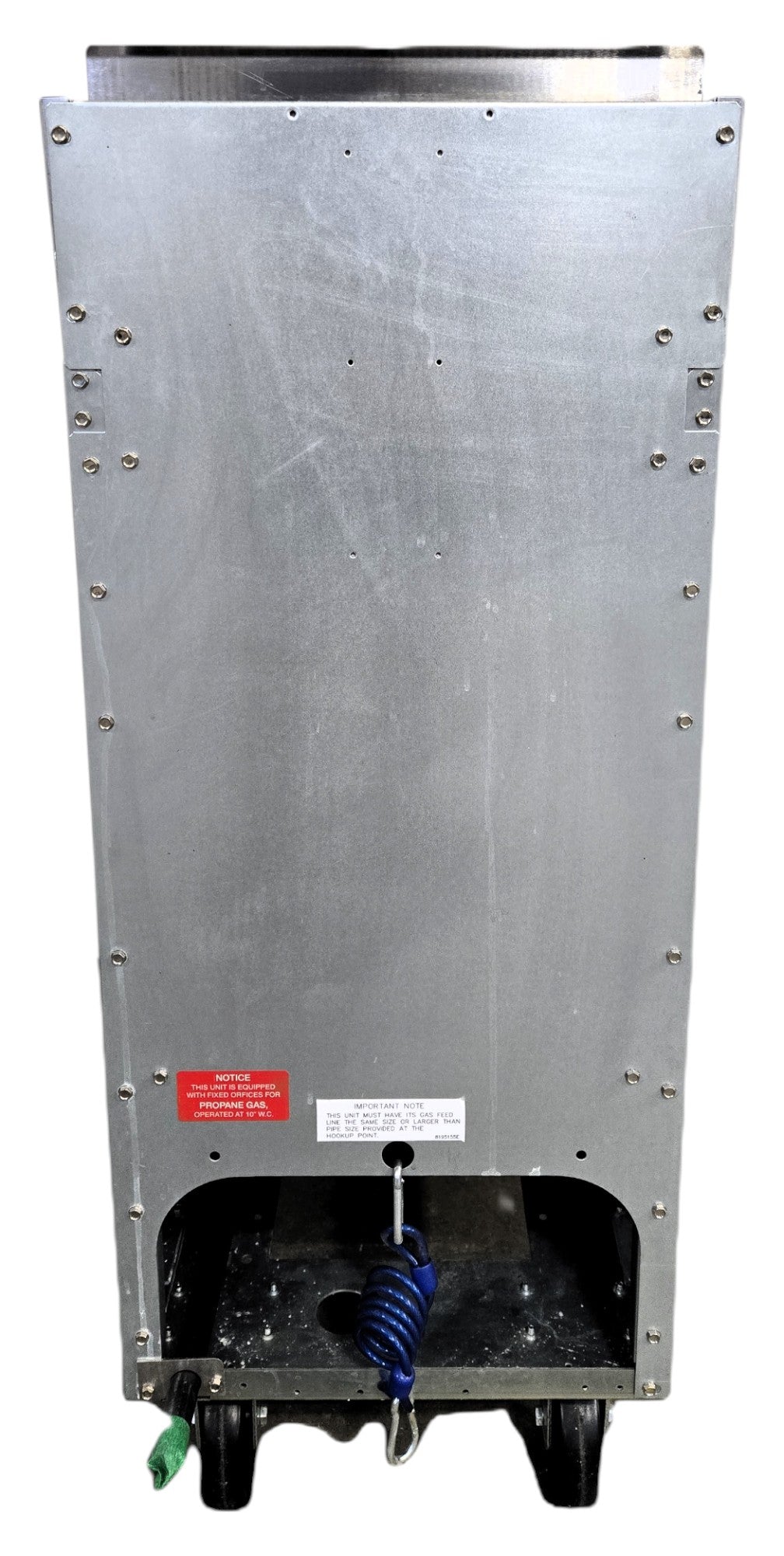Propane Fryer. Features Stainless Steel construction, 20 L oil capacity fryer, Master Jet burner heat-transfer system, 12x 15 x 4 frying area, 60-in steel legs with 1-in adjustment and casters, 3/4-in NPT gas connection, 15.62W X 30.87D X 41.12H, 152Lbs, Please note: Only photographed accessories are included