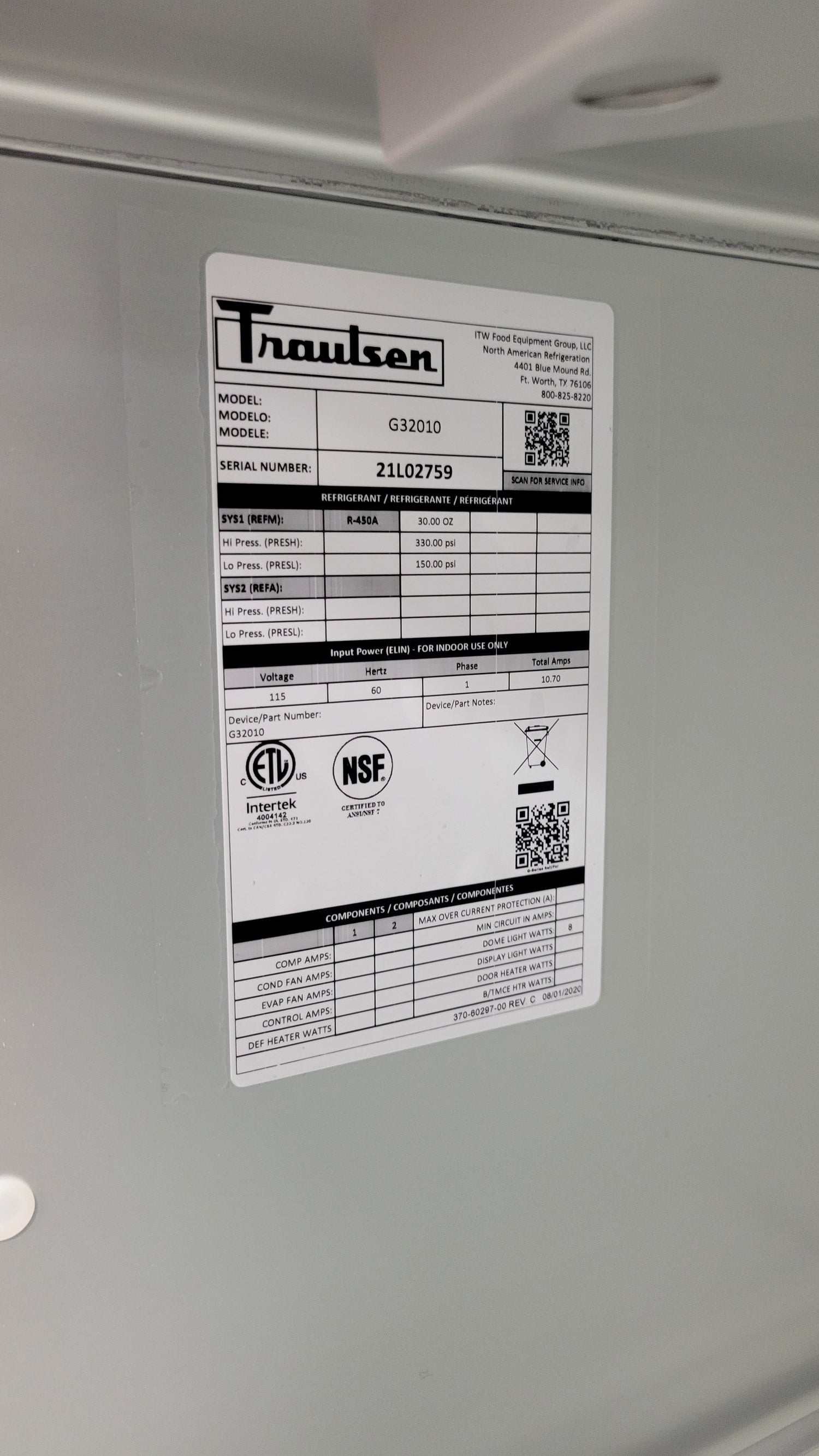 Traulsen G32010 Refrigerator Reach in Glass Door