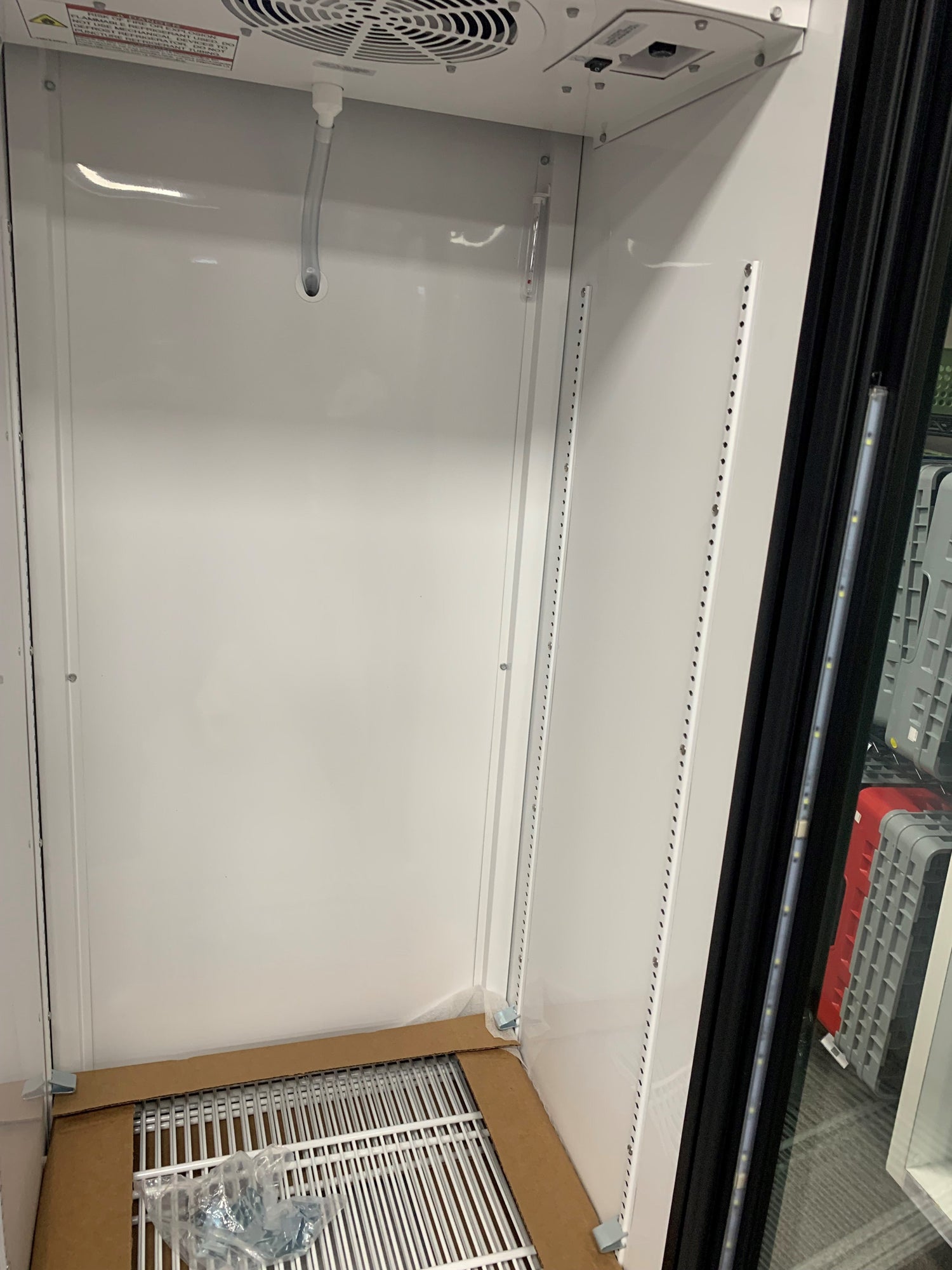 Upright Fridges. Features 1 door, 3 shelves, Aluminum interior, Black laminated vinyl exterior, Refrigeration system holds temperature 33F-38F(.5C-3.3C), 1/6HP, 2.0amps, 115V/60Hz/1ph, 24.87''W x 23.12''D x 62.37''H, 195lbs