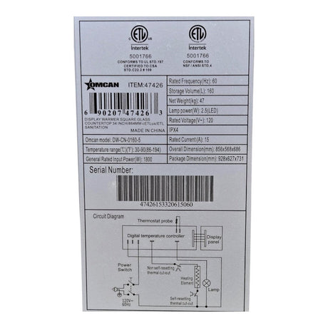 Omcan 44588 Ice Cream Freezer with Guard - 49-in Flat top