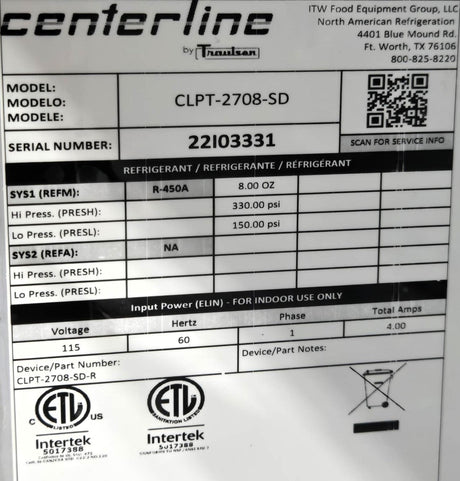 Traulsen CLPT-2708-SD-R Refrigerated Prep Table