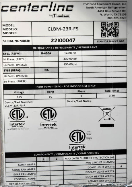 Traulsen CLBM-23R-FS Refrigerator - 1 Door