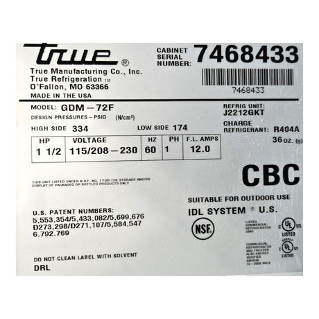 TRUE GDM-41SL-54-HC-LD Upright Refrigerator 47"