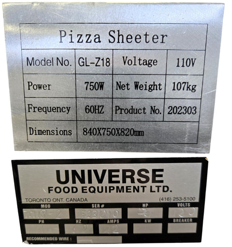 Universe TM-18 Dough Sheeter - Double Pass - 18 in