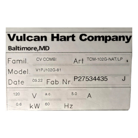 Vulcan V1PJ102G-81 Combi Oven - Natural Gas