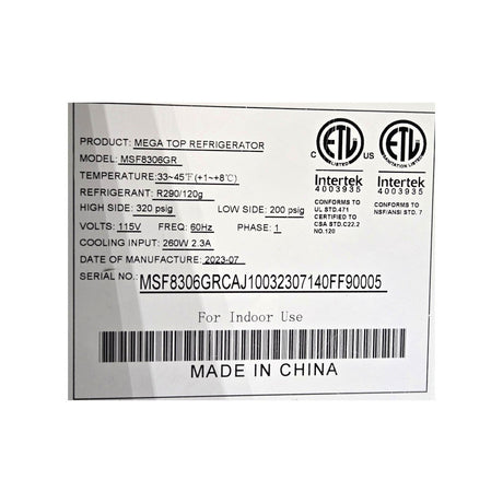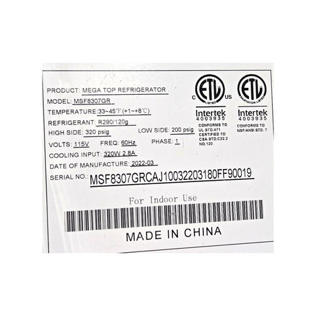 Atosa MSF8308GR 72" 3 Door Mega Top Prep Refrigerator