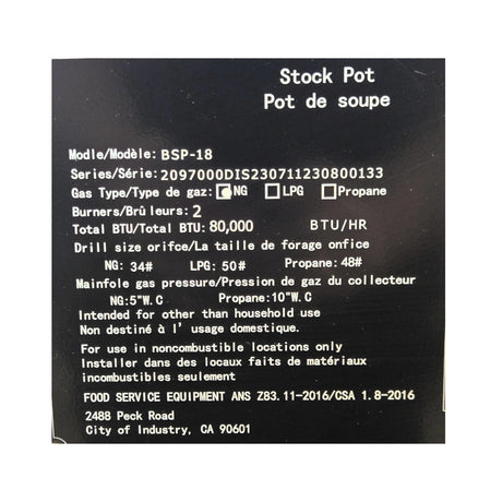 Brika BSP-18 18" Natural Single Burner Stock Pot Range