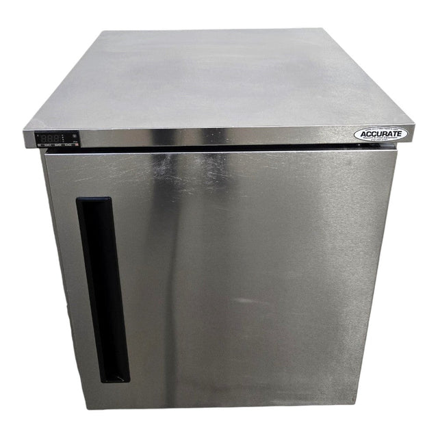 Undercounter Refrigerator. Features Stainless Steel Construction, 6.5 cu ft, LED digital temp controls, Easy Grip Door Handle, Temp Range 32-41F, Refrigerant R-450A, PSI Hi 330 Low 150, 8Oz, 3.3 Amps, 27.5W X 31.5D X 34H, 197Lbs, Please Note: Only photographed accessories are included