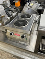 Electric Hot Plate. Features 2 coil burners, stainless steel front and sides, recessed controls, heat-on indicator lamps, 208V/60Hz/1ph, 15"W x 24"D x 11.25"H, 46lbs