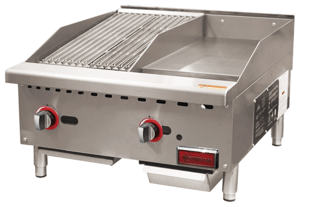 Omcan 24″ Countertop Gas Combination Charbroiler and Griddle Combo- 65,000 BTU Natural Gas